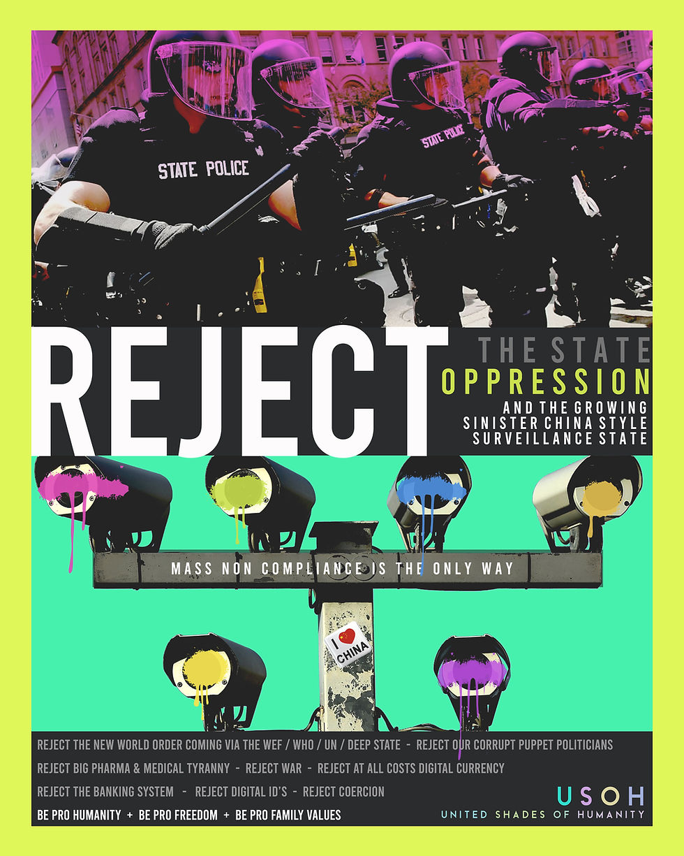 Let’s all do our bit to help prevent the world from becoming an even darker place - wear our vibrant graphic protest garments and help us wake up the masses to the sinister, manufactured division foisted on us by the elites. We just need to stand together and say NO!